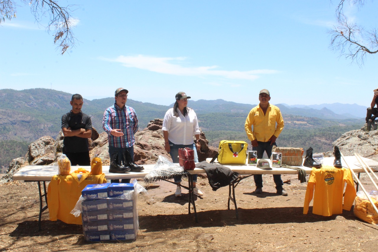 Surutato, Badiraguato a 23 de Junio del 2021.- Para fortalecer y dignificar las condiciones en que los héroes del bosque combaten los incendios en la zona serrana del estado, Isabel Mendoza Camacho entregó herramienta y vestimenta especializada a las brigadas forestales de Surutato, Llano Grande y El Triguito, Badiraguato y San José de los Hornos, Sinaloa Municipio.