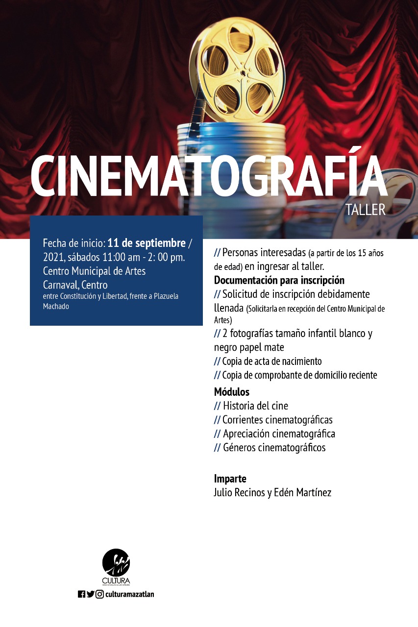 Mazatlan, Sinaloa.- De cara al nuevo ciclo escolar el Centro Municipal de Artes ofrece el Taller de Cinematografía, espacio educativo ideal para quienes muestren interés en el llamado séptimo arte.