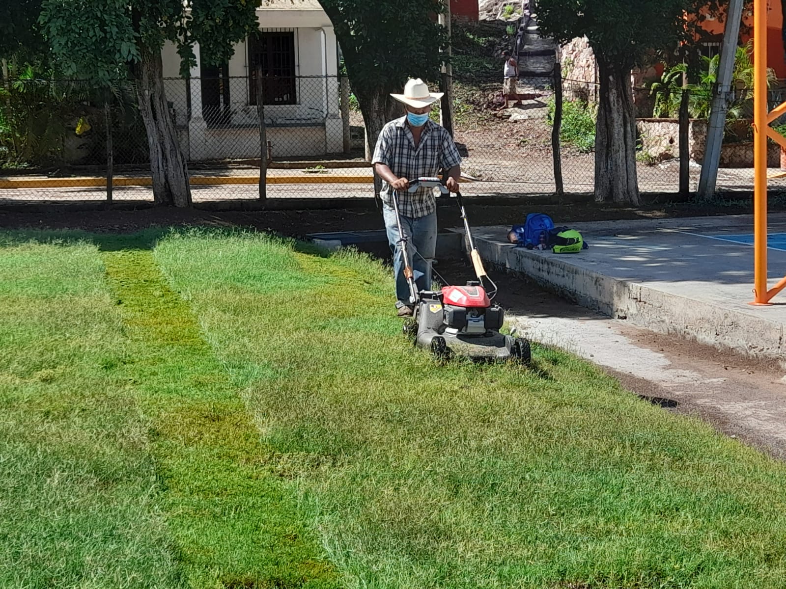 Personal del Instituto Municipal del Deporte acudió a la comunidad El Quelite para encargarse de cortar el pasto y de dejar la cancha de usos múltiples en condiciones optimas de uso.