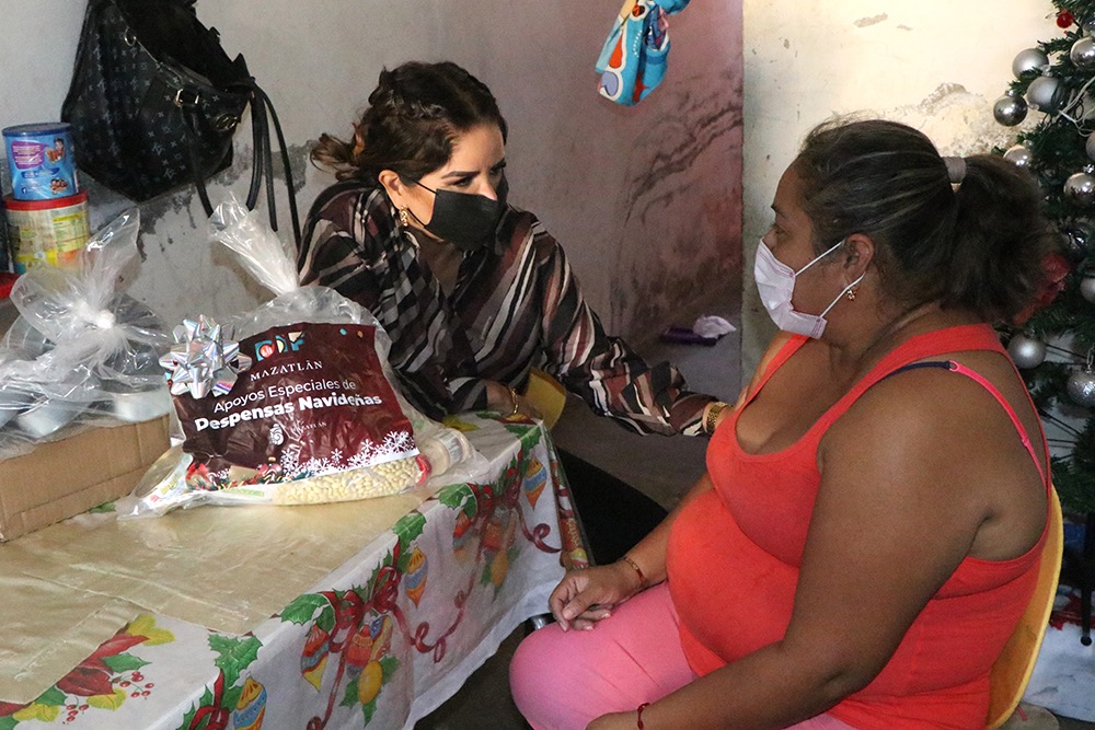 “Estoy muy contenta esta mañana de estar visitando a familias mazatlecas que nos han solicitado algunos apoyos a través de nuestras redes sociales, pero también a través del departamento de trabajo social en las oficinas de DIF Mazatlán. Es muy motivante para mí estos acercamientos porque escucho a la ciudadanía de viva voz sus solicitudes y en DIF estamos trabajando día a día para darle la solución oportuna a cada una de las solicitudes. Estas son fechas de empatía, de solidaridad y de amor y yo se que estas despensas navideñas llegarán en el momento adecuado para apoyar a la familia en su economía y la verdad lo hacemos con mucho cariño”, dijo.
