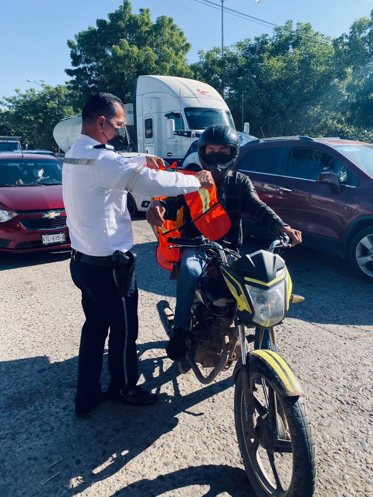 En esta primera etapa fueron 113 los chalecos preventivos que se entregaron en el cruce de la avenida Múnich y el Libramiento Luis Donaldo Colosio Murrieta.