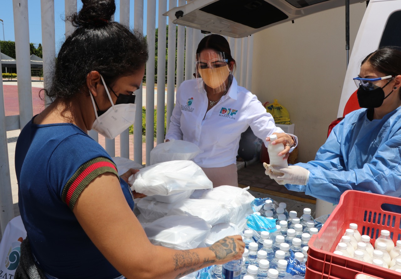 Mazatlán.- Continúa la entrega de alimentos a través de DIF Mazatlán en el Hospital General Martiniano Carvajal, y ahora este apoyo se replica en el IMSS atendiendo a peticiones realizadas por las familias de pacientes de Covid19 que se encuentran en este recinto médico.