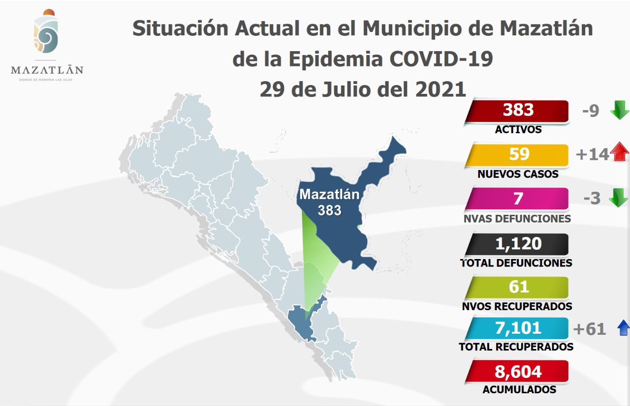 Mazatlán con ligera tendencia a la baja y 383 casos activos de Covid-19