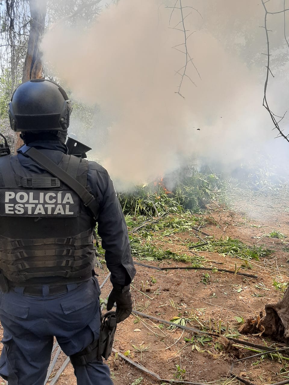 Se ubicó un sembradío con una extensión de más de mil metros cuadrados con un aproximado de 25 mil plantas del presunto enervante por lo que se procedió al aseguramiento, destrucción y quema del mismo.