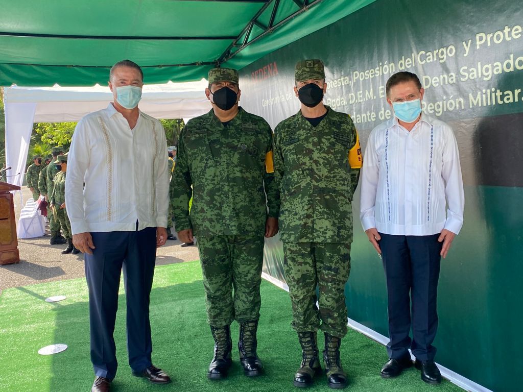 Mazatlán, Sinaloa, a 01 de julio del 2021.- En presencia del gobernador Quirino Ordaz Coppel; así como del gobernador de Durango, José Rosas Aispuro Torres, y autoridades militares encabezadas por el General de División D.E.M. Agustín Radilla Suastegui, comandante oficial mayor de la Secretaría de la Defensa Nacional, le rindió protesta al General de Brigada D.E.M. Enrique Dena Salgado como comandante de la III Región Militar, quien sustituye al General de División D.E.M. Carlos Ramón Carrillo del Villar.